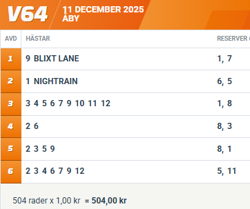 9 BLIXT LANE (V64-1) finslipar formen inför stundande STL-final 26/12 och ses med toppchans att inkassera fjärde raka segern.