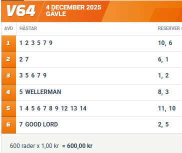 5 WELLERMAN (V64-4) kommer med bra form och den flyfotade tysken flyger här till spets och leder runt om med toppkusk för sammanhanget.