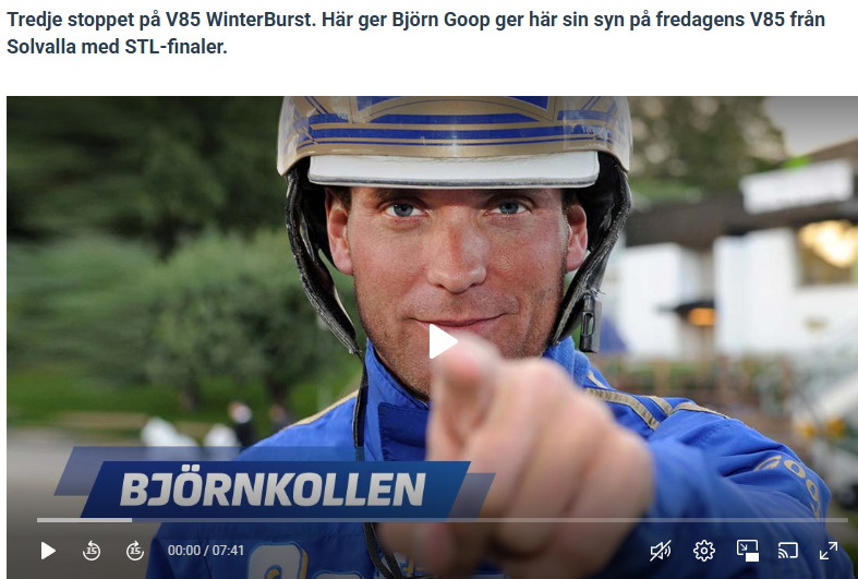 Solvalla - V85 WinterBurst®® - STL-finaler - Gert Lindbergs lopp - Hästägarkannan Fredag 26 december Start: 16:10