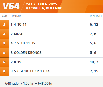 Fredag 24/10: Tips till V64®® på Axevalla/Bollnäs