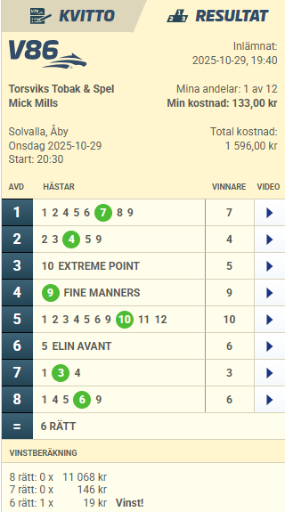 OBS! Tänk på att det är tidigare start på de flesta spelformer, bland annat startar V85 16:10!