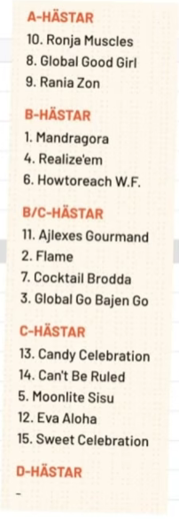 I övrigt så informerar Bergh om en del intressanta balansändringar på flera av övriga hästar och menar på att det kan ge extra effekt. Vi tar resterande hästar i tur och ordning.