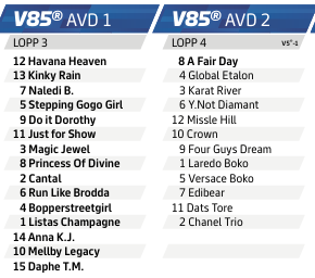 Fredagar inom ramen för V65 Direkt, 12:00-15:00 på TV12 och ATG Live, och efter sändning tillgängligt separat på atg.se. På cirka 10-12 minuter sammanfattas den viktigaste infon och de bästa dragen till V85, lopp för lopp. Ska man se något tipsprogram inför sitt spel på V85 så är det detta!