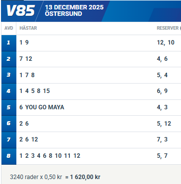 Att sedan Redén/Wäjersten väljer att åka dit med ett gäng hästar uppskattas säkert av publiken och detta trots att det är vintertider. Vi spelare njuter dock mest av jackpotten och två voltstartslopp med 15 hästar i varje.