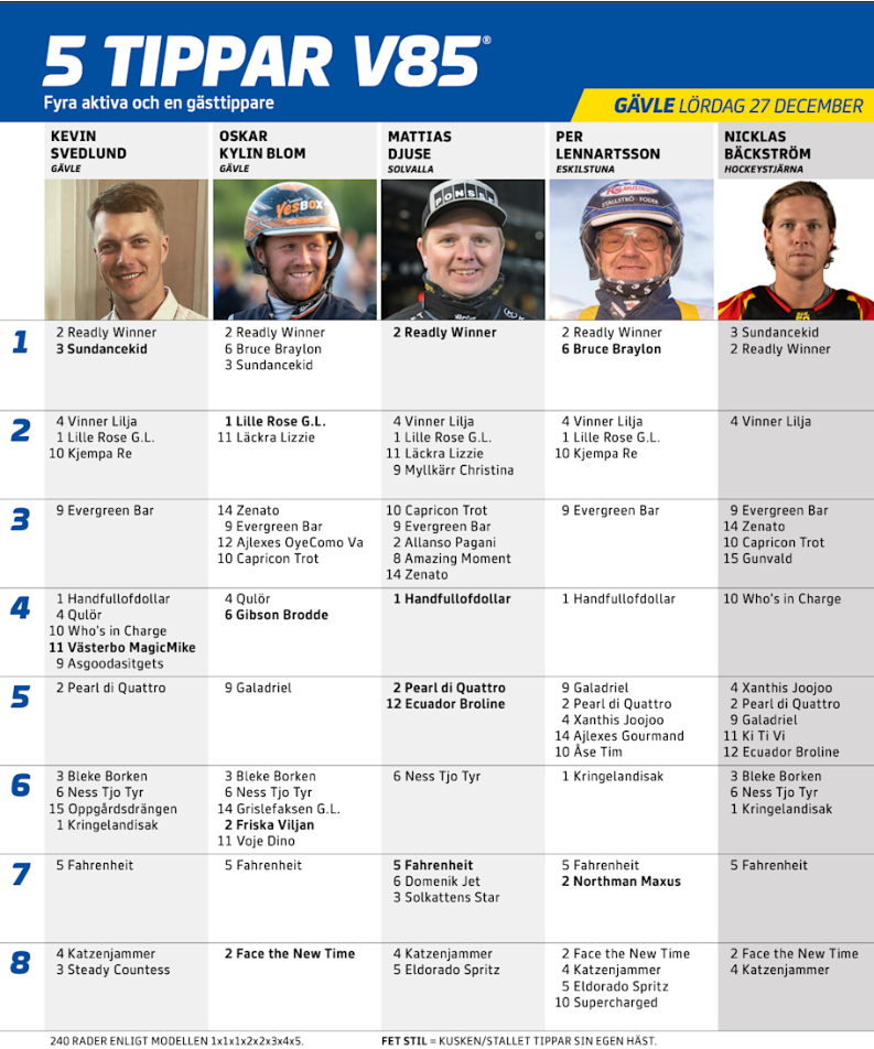 Gillar verkligen när de mindre tränarna tar för sig på V85. Till denna underbara omgång med tre lopp á 15 hästar känns det som att Oskar Kylin Blom står i centrum vilket gillas då han ofta agerar skrällkusk.