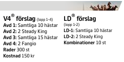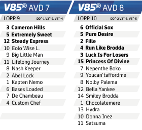 Häftig avslutning med 15 ston bakom bilen där jag tror mest på 3 Luck is for Losers som såg fin ut senast på Eskilstuna. Favorit blir 6 Official Sox, men känslan är att skor missgynnar henne.
