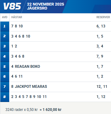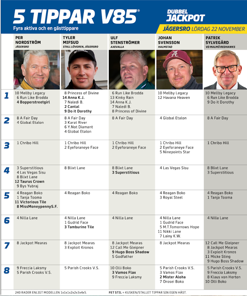 På Vincennes har vi ett gäng namnkunniga hästar (Kuiper, Icebreaker D.K. och Far Wise As) anmälda till Grupp 3-löpningen Prix de Chenonceaux. V85 är tillbaka på Jägersro och 48 miljoner i DubbelJackpot®® att spela om. Svensk Uppfödningslöpning kördes för första gången 1926, vilket för övrigt är samma år som Hambletonian startade. En klassiker ska avgöras, med andra ord, och kanske dags för Paul J P Hagoort att ta sin första inteckning. Reagan Boko (lopp 7) har gjort allting rätt så här långt i karriären och behövde aldrig ge järnet i uttagningsloppet. Vi tror visserligen inte att Magnus A Djuse släpper bakom startkatapulten Tanja Tooma, men ”Presidenten” har vunnit från dödens så vi är inte jätteoroliga.