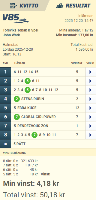 Detta lopp leder Oskar Kylin Blom bakom 2 Face the New Time hela vägen, punkt slut. 6 Boomtown är snabb ut och kan få vinnarhålet vilket även gäller 3 Steady Countess men nja, det bör inte gå då jag tror mera på 1 King of Cristal i rygg ledaren.