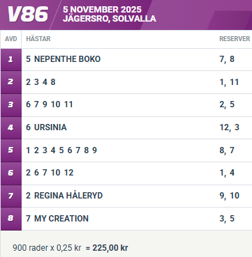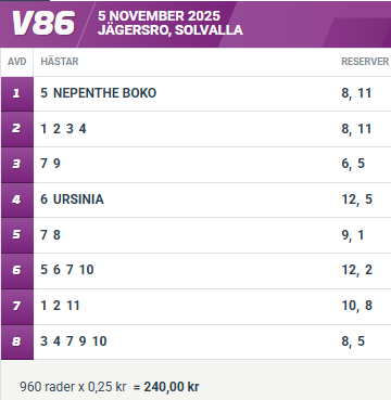 Onsdag 5/11: Tips till V86®® på Jägersro/Solvalla